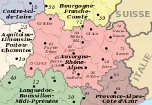 Auvergne-Rhône-Alpes est une région administrative française située dans le quart sud-est de la France métropolitaine. Elle est créée par la réforme territoriale de 2015 en date du , à la suite des élections régionales des 6 et 13 décembre 2015. Regroupant les anciennes régions Auvergne et Rhône-Alpes, elle se compose de 12 départements et d'une métropole à statut de collectivité territoriale, sa superficie est de 69 711 km2 et sa population s'élevait à 8 114 361 habitants[7] en 2021 ; son chef-lieu est Lyon.