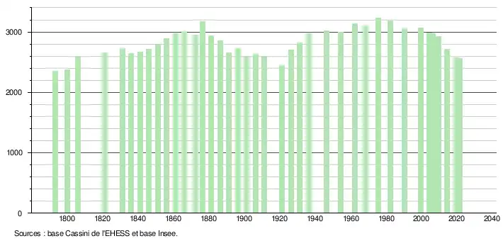2 556 hab. (2021 en diminution de 5,26 % par rapport à 2015)