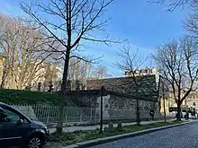- Dans la partie ouest de l’avenue, derrière le bâtiment des aqueducs de la Vanne et du Loing , subsistent des éléments de la porte d'Arcueil de l’enceinte de Thiers[2].