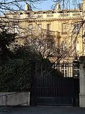 Les grilles le long de l'avenue Gabriel n'ont été mises en place qu'en 1818. Auparavant, les hôtels du faubourg Saint-Honoré n'étaient séparés des Champs-Élysées que par un fossé doublé d'une barrière.