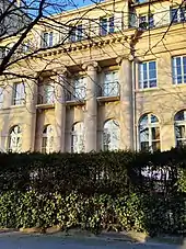 - No 26 : hôtel de Hirsch, dont l'entrée se situe au 2, rue de l'Élysée. En 1906, l’hôtel, de 1664 m2, est mis en vente pour la somme de 2 millions de francs (ainsi d’ailleurs que le no 24, aujourd’hui démoli, pour la même somme)[6].
