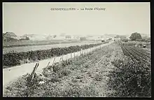 Boulevard d'Épinay, pont du chemin de fer. Le panneau sur la gauche indique chemin des Champs-Fourgons.