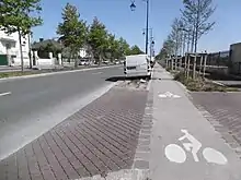Piste cyclable sur trottoir, avenue Raymond-Aron, mai 2020.