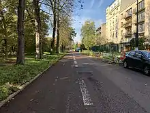 Cette voie est prolongée dans le bois de Vincennes, par la route de la Dame-Blanche.