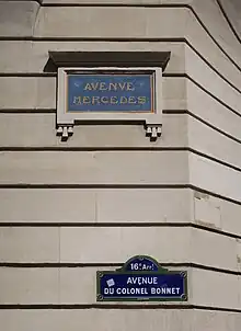 Dans Le Flâneur des deux rives (1918), le poète Guillaume Apollinaire évoque « l'ancienne avenue Mercédès, nommée aujourd’hui avenue du Colonel-Bonnet, et qui est l'une des artères les plus modernes de Paris »[8].