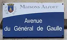 Plaque émaillée de l'avenue du Général-de-Gaulle; cliché pris en 2021.
