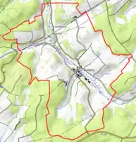 L'occupation des sols de la commune, telle qu'elle ressort de la base de données européenne d’occupation biophysique des sols Corine Land Cover (CLC), est marquée par l'importance des territoires agricoles (77,2 % en 2018), une proportion identique à celle de 1990 (77,3 %). La répartition détaillée en 2018 est la suivante : zones agricoles hétérogènes (43,1 %), prairies (34,1 %), forêts (22,6 %), milieux à végétation arbustive et/ou herbacée (0,1 %)[15]. L'évolution de l’occupation des sols de la commune et de ses infrastructures peut être observée sur les différentes représentations cartographiques du territoire : la carte de Cassini (XVIIIe siècle), la carte d'état-major (1820-1866) et les cartes ou photos aériennes de l'IGN pour la période actuelle (1950 à aujourd'hui)[Carte 3].