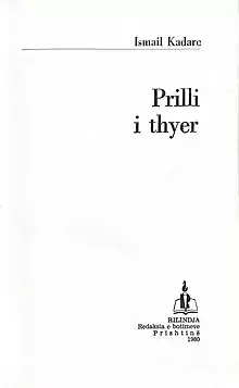 Page de titre du roman d'Ismail Kadare, Avril brisé, en version originale albanaise. Publié par Rilindja à Pristina, 1980.