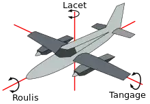 Un aéronef en vol est libre de tourner dans trois dimensions : tangage, le nez vers le haut ou vers le bas sur un axe reliant les ailes ; lacet, le nez à gauche ou à droite autour d'un axe allant de haut en bas ; et roulis, rotation autour d'un axe allant du nez à la queue. Les axes sont alternativement désignés comme latéral, vertical et longitudinal. Ces axes se déplacent avec le véhicule et pivotent par rapport à la Terre en même temps que l'aéronef. Ces définitions ont été, d'une façon analogue, appliquées à des engins spatiaux lorsque le premier vaisseau spatial habité a été conçu à la fin des années 1950.
