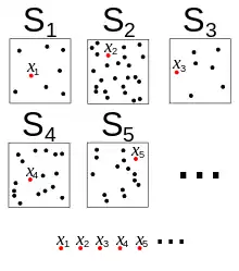 - Cn = la différence de Bn et de l'union de tous les Cj, pour tout j < n. Clairement, chaque ensemble Cn a au moins 1 et au plus 2n éléments, et les Cn sont deux à deux disjoints. Une deuxième application de ACω donne une suite (cn) avec cn ∈ Cn.