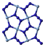 | Structure de l'azoture d'argent, l'argent est en bleu clair et l'azote en bleu foncé | |