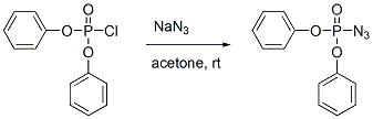 L'azoture de diphénylphosphoryle peut être obtenu par réaction entre le phosphorochloridate avec l'azoture de sodium :