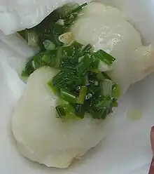Bánh ít trần et ciboule émincée.