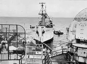 - USNS Coastal Sentry (T-AGM-15) (en) late 1950s-1972 - navire cargo de classe C1-M pour l'US Navy