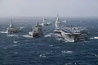 Quatre bâtiments dits ravitailleurs de forces, ou BRF[14], sont commandés le , pour un montant de 1,7 milliard d'euros, par l'Organisation conjointe de coopération en matière d'armement (OCCAR) aux Chantiers de l'Atlantique et à Naval Group[15],[16].