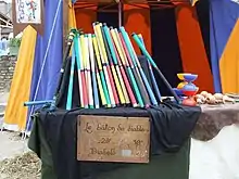 - le bâton du diable traditionnel est de forme biconique, moins large au centre qu’aux extrémités (3 cm de diamètre aux extrémités contre 1,5 cm au centre environ) ;