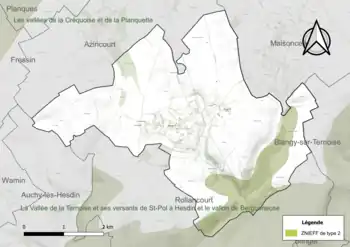 Le territoire communal comprend une ZNIEFF de type 2[Note 2] : la vallée de la Ternoise et ses versants de Saint-Pol-sur-Ternoise à Hesdin et le vallon de Bergueneuse. Cette ZNIEFF, située au nord d'une ligne allant de Saint-Pol-sur-Ternoise à Hesdin, d’une superficie de 9 502 ha et d'une altitude variant de 22 à 90 mètres, présente des fonds de vallées, des coteaux crayeux et des zones prairiales[11].