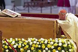 La cause en béatification de Jean-Paul II est ouverte le , par le pape Benoît XVI. La béatification du pape défunt a ensuite lieu le en présence d'un demi million de personnes.