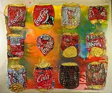 Rassemblant en des techniques mixtes les canettes métalliques ramassées et la peinture acrylique, Les Écrasés, selon Béatrice Nodé-Langlois, « dérisoires petits cadavres de métal évoquant nos lendemains de fête et les stigmates de nos désenchantements »[9], mettent en lumière que « le rejet n'est pas une fatalité, que le devenir, et le changement, et la chance existent »[9], et tiennent du bas-relief : abimées, déchirées, aplaties, oxydées ou grumeleuses, les canettes écrasées peuvent en effet altérer la surface de leurs toiles, leur imposer rudesse et bizarreries, contraindre la fluidité de la peinture à cohabiter avec des rigidités métalliques[9].