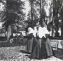 Dans ce mouvement de réforme, la femme joua un rôle de premier plan ; à côté des religieuses conventuelles ou monastiques, on vit surgir en effet un groupe nombreux de femmes choisissant délibérément de vivre les valeurs religieuses non dans la réclusion, mais dans le siècle. Ces premières béguines firent leur apparition dans tous les pays d’Europe, donc aussi aux Pays-Bas, mais surtout dans les Pays-Bas méridionaux, où des communautés particulières, appelées béguinages, se constituèrent à partir du XIIIe siècle[2].