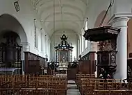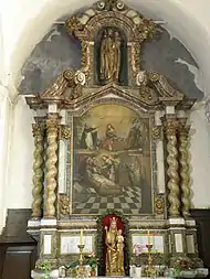 - l'église Sainte-Élisabeth de style gothique à l’origine, qui doit son aspect actuel aux remaniements effectués vers 1700. Le mobilier, dont les stalles[note 3], est en grande partie de style baroque et date du XVIIe siècle, mais l'église garde quelques objets de l'époque gothique, notamment des statues de la madone ;