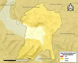 Le retrait-gonflement des sols argileux est susceptible d'engendrer des dommages importants aux bâtiments en cas d’alternance de périodes de sécheresse et de pluie[38]. 84,4 % de la superficie communale est en aléa moyen ou fort (59 % au niveau départemental et 48,5 % au niveau national)[Carte 5]. Depuis le , en application de la loi ELAN, différentes contraintes s'imposent aux vendeurs, maîtres d'ouvrages ou constructeurs de biens situés dans une zone classée en aléa moyen ou fort[Note 8],[39].