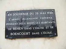 Le , 342 personnes sont entassées dans l'église par les Allemands. Ils y passeront deux nuits[19]. Les habitants de Boëncourt sont enfermés dans l'école.