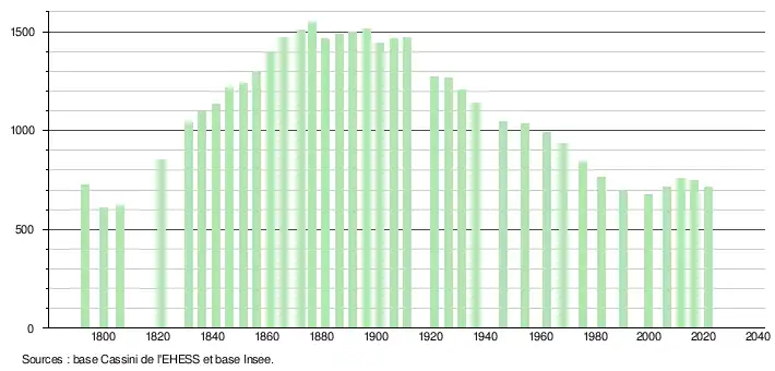 716 hab. (2021 en diminution de 5,54 % par rapport à 2015)