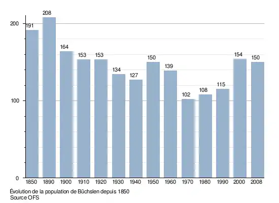 Le graphique suivant résume l'évolution de la population de Büchslen entre 1850 et 2008[3] :