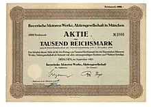À la suite de la défaite de l'Allemagne lors de la Première Guerre mondiale et du traité de Versailles signé en 1919, il lui fut interdit de produire des avions ainsi que des moteurs pour son pays, et l'entreprise fut donc forcée de se reconvertir. Elle se diversifia et produisit des moteurs pour motocyclettes (1922, avec un bicylindre à plat dessiné par Max Friz), camions et voitures[8]. La production de motos prit de l'importance, avec un investissement important dans la compétition. En 1929, une BMW atteint 216,75 km/h, pilotée par l'Allemand Ernst Jakob Henne.