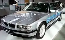 Le , BMW a présenté une flotte de 15 exemplaires de la voiture à hydrogène 750hL à Berlin[19],[20]. BMW a décrit la 750hL comme étant «la première voiture à hydrogène de petite série au monde»[21]. Son moteur 12 cylindres à combustion interne et à hydrogène peut fonctionner à la fois à l'hydrogène et à l'essence. Lorsqu'elle fonctionne à l'hydrogène, elle délivre 150 kW (204 ch), accélère de 0 à 100 km/h en 9,6 secondes et atteint une vitesse de pointe de 226 km/h. La production du moteur à hydrogène a été intégrée à la production des moteurs standard à l'usine de Dingolfing. Il ne diffère essentiellement des moteurs essences conventionnelles que par le conduit d'admission avec des soupapes d'injection supplémentaires pour l'hydrogène. L'hydrogène est cryogéniquement stocké à une température de moins 253 degrés Celsius dans un réservoir en acier à double paroi derrière les dossiers des sièges arrière. Le réservoir d'hydrogène a une capacité de 140 litres et permet une autonomie supplémentaire de 350 kilomètres. De plus, la 750hL dispose d'une pile à combustible d'une puissance de 5 kilowatts à 42 volts. Celle-ci n'est pas utilisée comme unité d'entraînement, mais comme groupe auxiliaire de puissance (GAP) pour l'alimentation électrique du réseau de bord[20]. Lors de l'Exposition universelle de 2000 à Hanovre, les véhicules ont été présentés et également utilisés en tant que navette[22],[21]. De février à , les véhicules ont été présentés dans les villes de Dubaï, Bruxelles, Milan, Tokyo, Los Angeles et Berlin dans le cadre du "CleanEnergy WorldTour 2001". En , la 750hL avait parcouru plus de 150 000 kilomètres[19]. Sur le Nürburgring-Nordschleife, la 750hL a réalisé un temps au tour de 9 minutes et 53 secondes en fonctionnant à l'hydrogène[23].