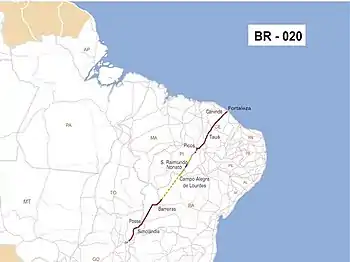 La BR-020 est une route fédérale du Brésil. Son point de départ se situe à Brasília, la capitale fédérale du pays, et elle s'achève à Fortaleza, dans l'État du Ceará. Elle traverse le District fédéral et les États de Goiás, Bahia, du Piauí et du Ceará.