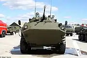 | Armement secondaire | 1 mitrailleuse coaxiale PKTM de 7,62 mm (2 000 munitions) 1 lance-grenades AGS-17 de 30mm (400 munitions) 1 lance-missiles antichars 9K113M Konkurs-M /AT-5 Spandrel (4 missiles embarqués) |