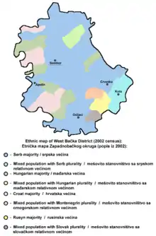 Le district de Bačka occidentale (en serbe cyrillique : Западнобачки округ ; en serbe latin : Zapadnobački okrug) est une subdivision administrative de la République de Serbie. Au recensement de 2011, il comptait 187 581 habitants[1]. Le centre administratif du district de Bačka occidentale est la ville de Sombor.