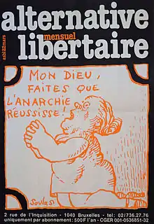 Le , le quotidien Le Soir consacre toute sa page 3 au thème Les anars veulent aujourd'hui s'organiser[44]. Ce journal publie d'autres contributions (sur papier, avant l'arrivée d'internet) dont : L'anarchie, une utopie mobilisatrice[45]; Mon identité en noir, rouge et vert[46]; Contrer les propos démagogiques[47]; Clabecq, Renault et les autres…[48]; etc.