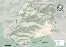 L'occupation des sols de la commune, telle qu'elle ressort de la base de données européenne d’occupation biophysique des sols Corine Land Cover (CLC), est marquée par l'importance des forêts et milieux semi-naturels (78 % en 2018), une proportion sensiblement équivalente à celle de 1990 (79,4 %). La répartition détaillée en 2018 est la suivante : forêts (62,4 %), cultures permanentes (17,4 %), milieux à végétation arbustive et/ou herbacée (15,6 %), zones agricoles hétérogènes (2,5 %), zones urbanisées (2,1 %)[17]. L'évolution de l’occupation des sols de la commune et de ses infrastructures peut être observée sur les différentes représentations cartographiques du territoire : la carte de Cassini (XVIIIe siècle), la carte d'état-major (1820-1866) et les cartes ou photos aériennes de l'IGN pour la période actuelle (1950 à aujourd'hui)[Carte 1].