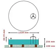 Ce bac fait 1,80 m de diamètre et 0,60 m de hauteur. Il est en fer galvanisé non peint et enterré de telle sorte que le bord dépasse le sol environnant de 5 cm. Le niveau d'eau dans la cuve est approximativement au niveau du sol[4]. Une variante de ce bac est appelé « bac Colorado ». Comme son nom l'indique, il s'agit d'un instrument utilisé dans l'ouest américain. Il est carré mesurant 1 m de côté et ayant une profondeur de 0,5 m[5].