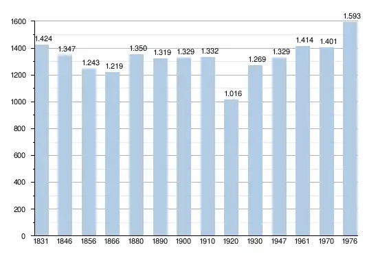 - Sources : INS, Rem. : 1831 jusqu'en 1970 = recensements, 1976 = nombre d'habitants au 31 décembre[2].