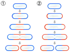 (1) croissance au centre du corps de la cellule, p.ex. Bacillus subtilis, E. coli, etc.