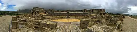 Bien conservé, il présente encore ses sept portes d'accès percées sous les gradins en partie préservés, et les parties basses du mur de scène[13].