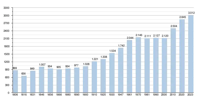 Au , la commune compte 2 874 habitants[2][réf. non conforme], 1 441 hommes et 1 433 femmes, pour une superficie totale de 7,48 km2, soit une densité de population de 384,22 habitants au km2.