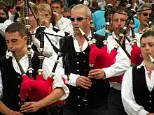 Le Bagad joue en compagnie de Carlos Núñez lors de son concert au Festival des Hortensias de Perros-Guirec.