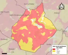 Le retrait-gonflement des sols argileux est susceptible d'engendrer des dommages importants aux bâtiments en cas d’alternance de périodes de sécheresse et de pluie. 97 % de la superficie communale est en aléa moyen ou fort (84,7 % au niveau départemental et 48,5 % au niveau national). Sur les 140 bâtiments dénombrés sur la commune en 2019, 133 sont en aléa moyen ou fort, soit 95 %, à comparer aux 86 % au niveau départemental et 54 % au niveau national. Une cartographie de l'exposition du territoire national au retrait gonflement des sols argileux est disponible sur le site du BRGM[23],[24].