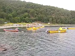 Au fond de la baie, juste derrière l'île Upu, se trouve une balise à 54° 51′ S, 67° 30′ O, à proximité de « Puerto Almirante Brown ». C'est là que débouche le río Lasifashaj.