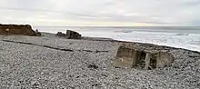 Le cordon de galets, graviers et sable était par le passé large d'une cinquantaine de mètres (de plus de 100 mètres par endroits) et haut de 7 à 8 mètres, mais l'érosion et des prélèvements excessifs effectués par les hommes l'ont fragilisé, ainsi que la circulation automobile longtemps tolérée à l'arrière du cordon de galets. Dès mars 1934, un arrêté préfectoral avait interdit toute extraction côtière sur le territoire de la commune de Plovan[35]. L'exploitation du cordon de galets s'est toutefois aggravée pendant la Seconde Guerre mondiale du fait des Allemands principalement à Tréguennec dans le cadre de l'Organisation Todt pendant la Seconde Guerre mondiale (les galets prélevés étaient destinés à la construction des blockhaus du mur de l’Atlantique[36]. Les extractions durèrent 3 ans au rythme de 6 trains partant chaque jour de l’usine de triage de Tréguennec), et s'est poursuivie les décennies suivantes par des entrepreneurs locaux, approvisionnant entre autres la reconstruction de la ville de Brest : l'exploitation cessa définitivement en 1968.