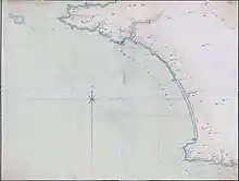 Carte de la mer d'Iroise avec la baie d'Audierne au sud. | |