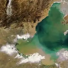 Photo satellite de la baie de Bohai.