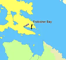 La baie de Frobisher est un bras du détroit de Davis long d'environ 230 kilomètres, situé au sud-est de l'île de Baffin. La baie fait entre vingt kilomètres de large (au fond de la baie) et quarante kilomètres à sa sortie sur le détroit de Davis. Elle est nommée d'après l'explorateur anglais du XVIe siècle Martin Frobisher, qui l'a explorée durant ses voyages à la recherche du passage du Nord-Ouest.