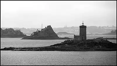 - l'île Noire, basse et dénudée, sur laquelle se dresse une tour carrée (phare) ;