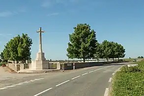 La Croix du Sacrifice se dresse à l'angle des deux routes.